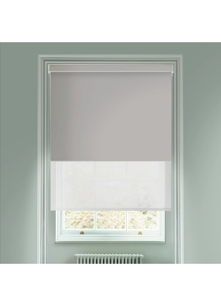 Blackout Windsor Light Grey and Sheer Metal Electric Double Roller Blind