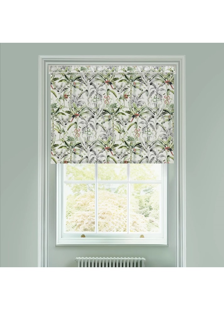 Bring the rainforest into your home with this beautiful botanical design reminiscent of classic nature illustrations. Palms and plants adorn the white background, the perfect home for the birds, butterflies and other creatures seen amingst the leaves. A great alternative to a plain neutral blind, the design is highlighted with spot colouring to add interest and give a really unique feel to this blind.