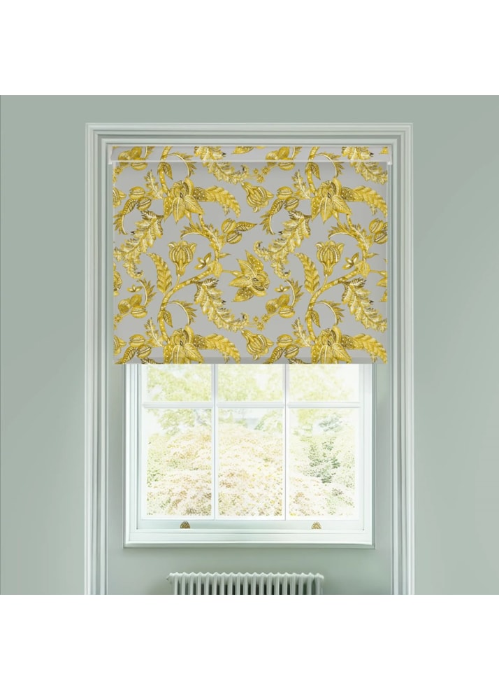 A warm grey background is brought to life with climbing leaves and flowers in stylish mustard yellow with white patterning that gives a unique finish to this classic blind design. An on trend colour combination that you'll be seeing all year, we especially love this in a living room accessorised with velvet cushions and Moroccan style lamps.
